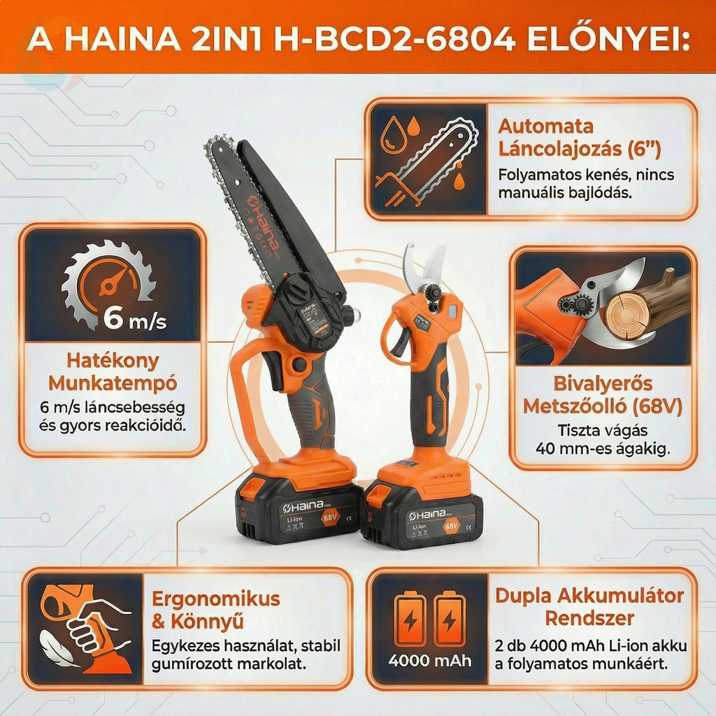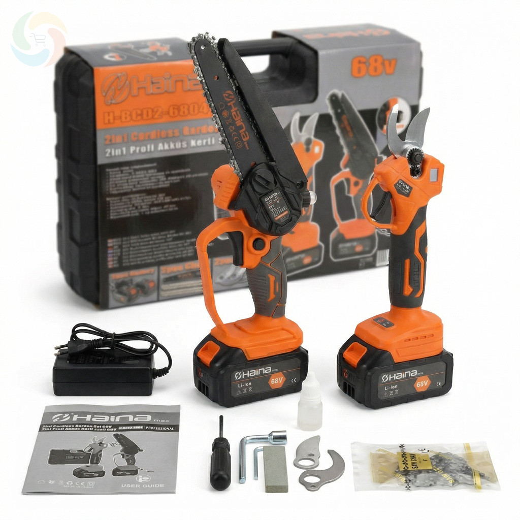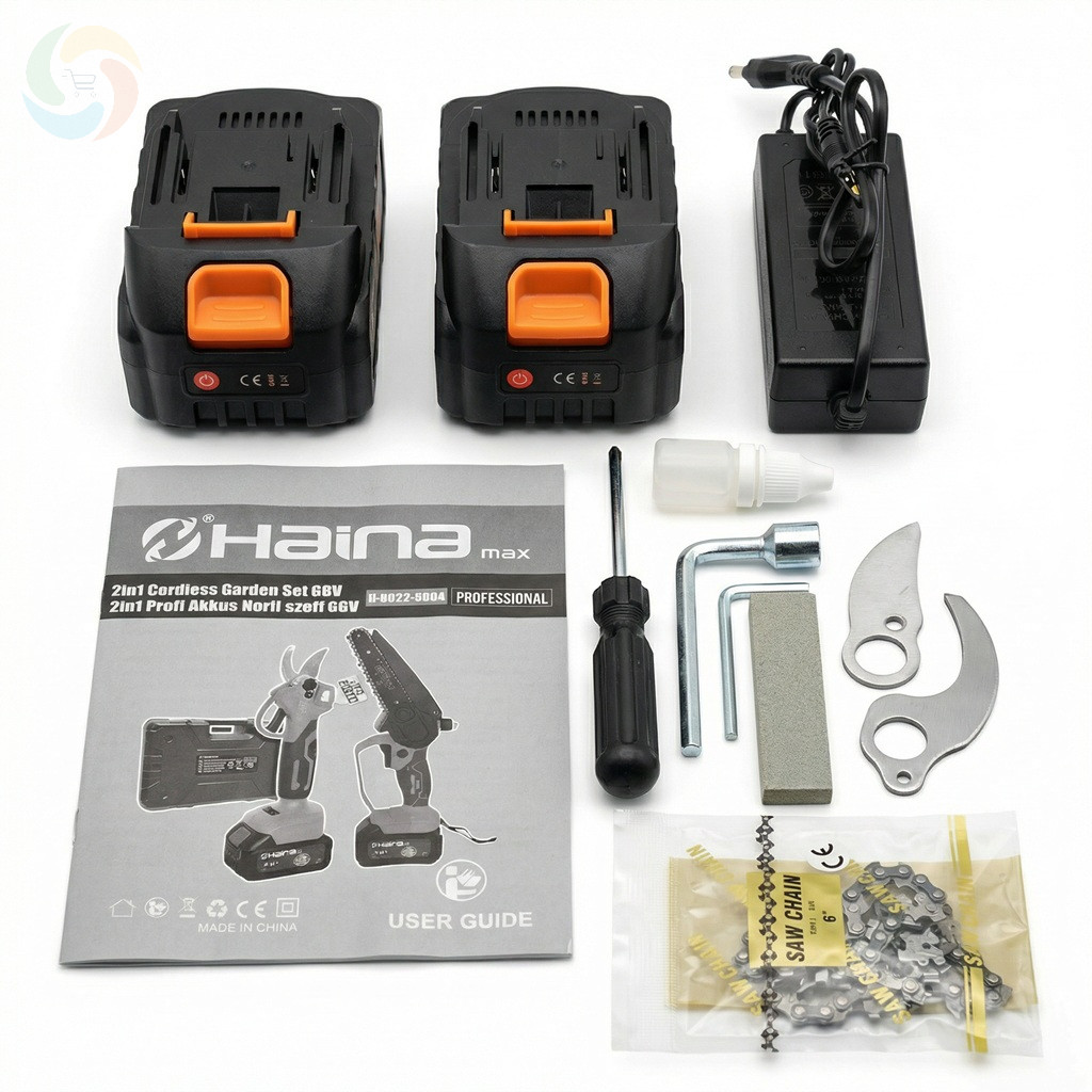Haina 2in1 Akkus Kerti Szett - 6" Ágvágó Láncfűrész és Metszőolló 68V H-BCD2-6804
