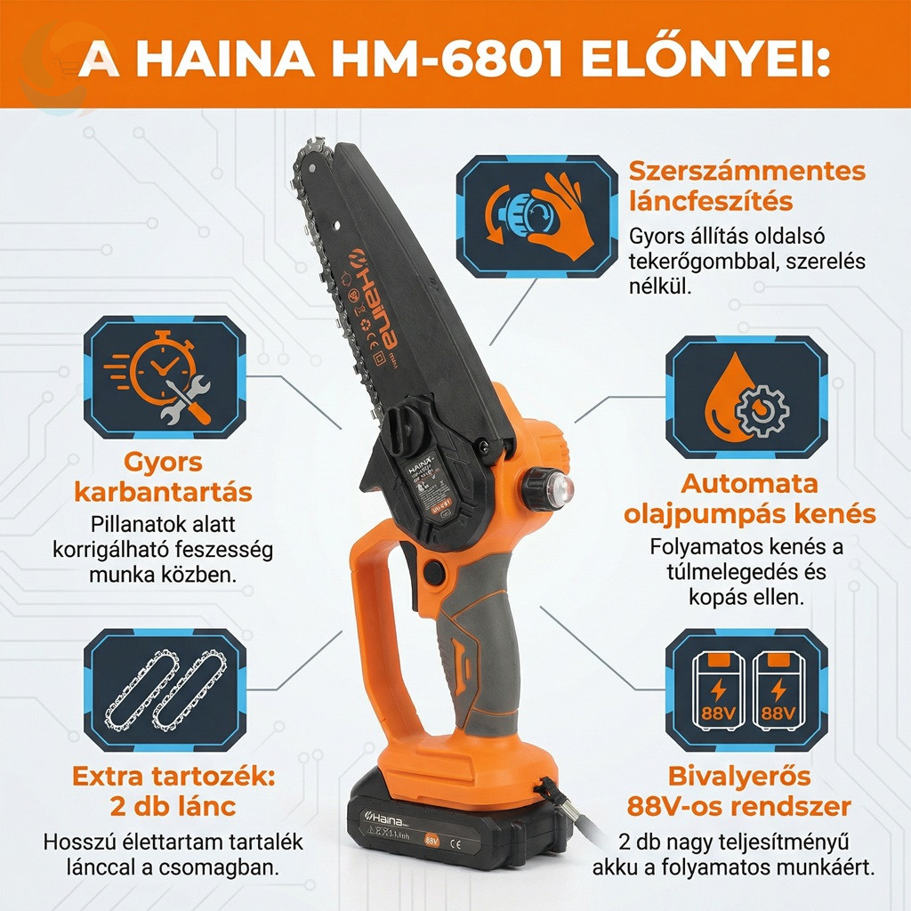 Haina Ágvágó Láncfűrész Készlet Dupla 88V Akkuval 6" HM-6801
