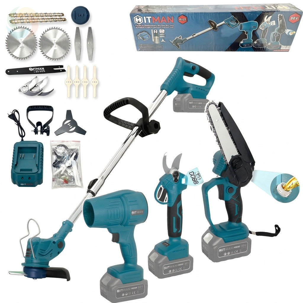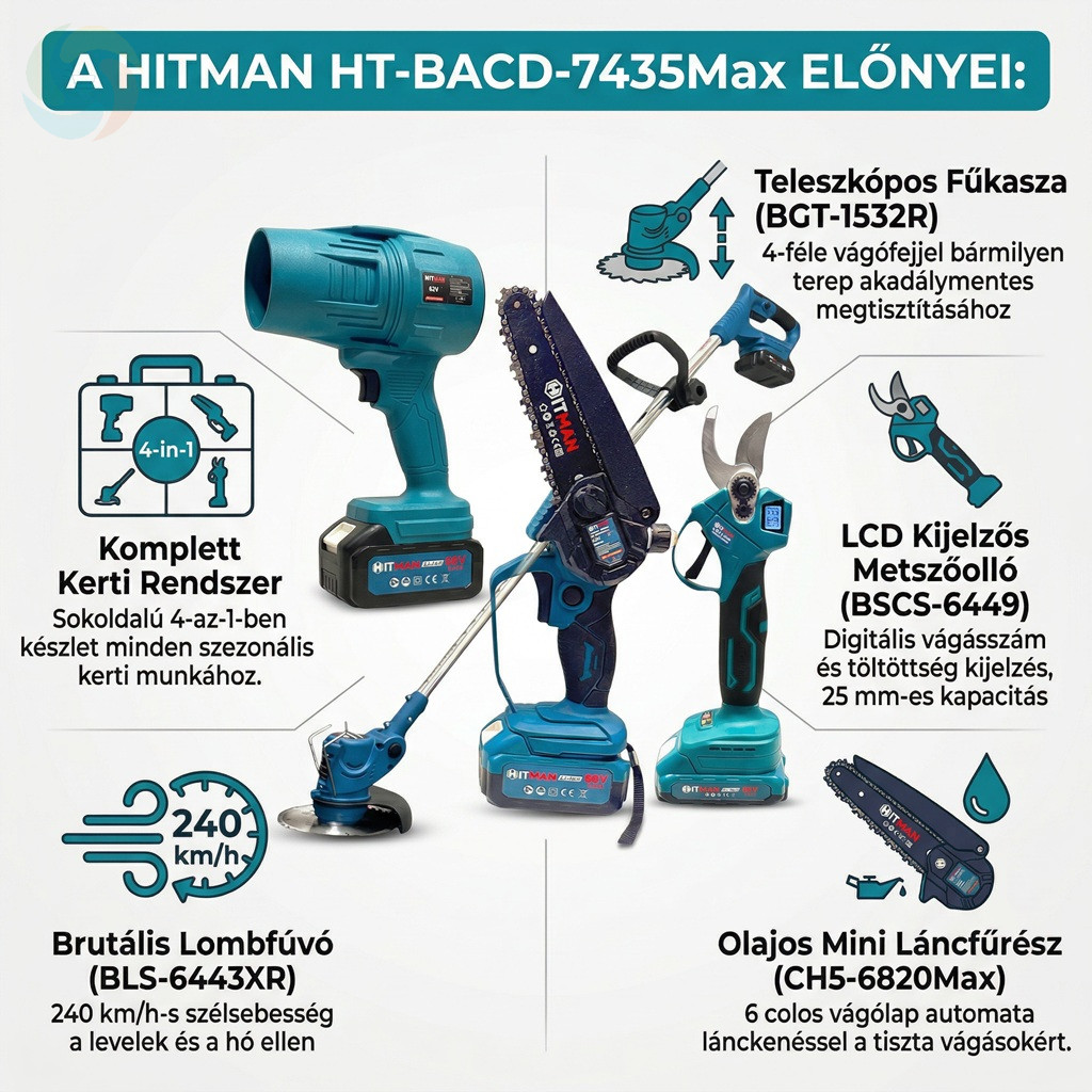 Hitman 4in1 Akkus Kerti Szett - Fűkasza, Láncfűrész, Metszőolló, Lombfúvó HT-BACD-7435Max