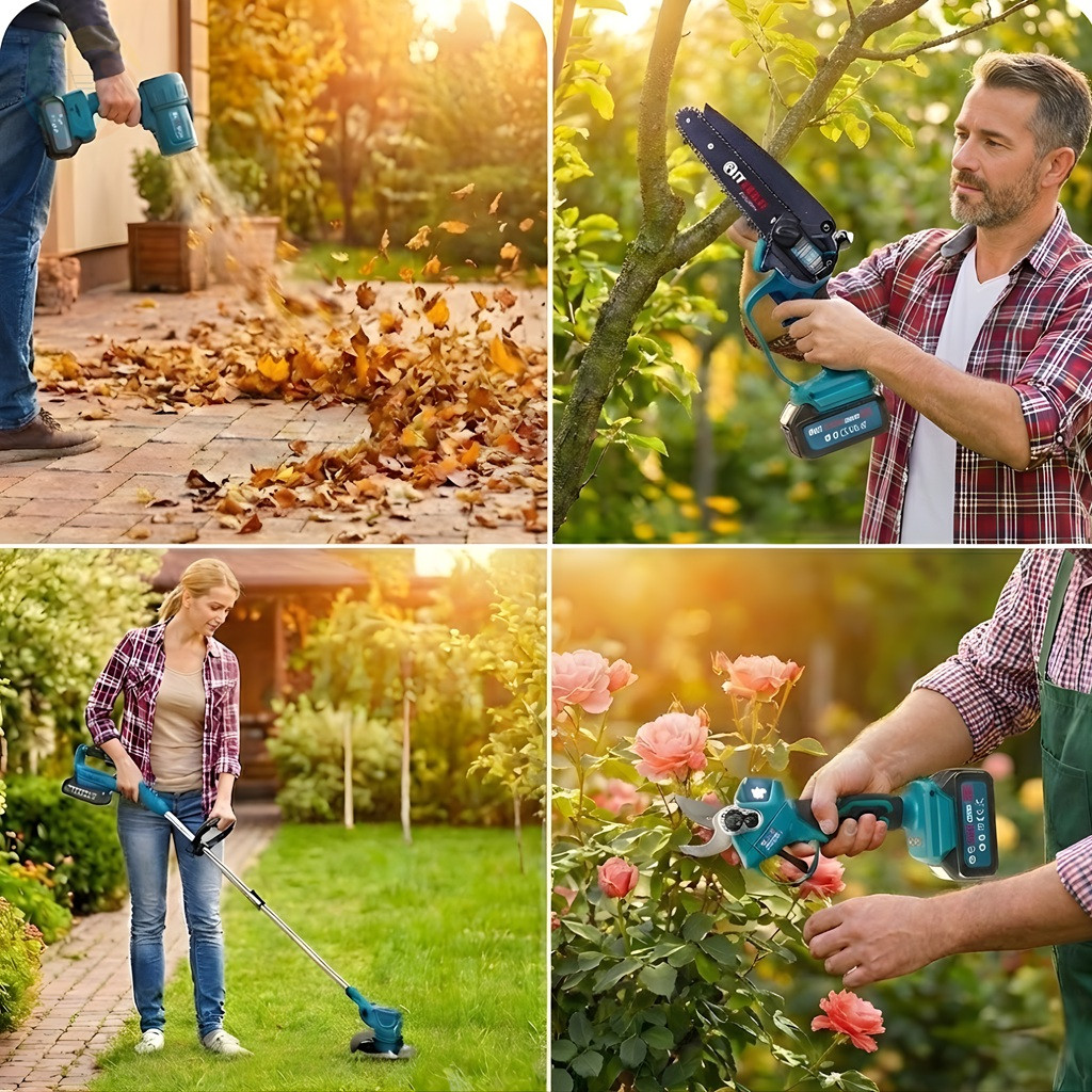 • 4 az 1-ben komplexitás: Egyetlen készletben megkapod a fűkaszát, a metszőollót, a mini láncfűrészt és a lombfúvót.